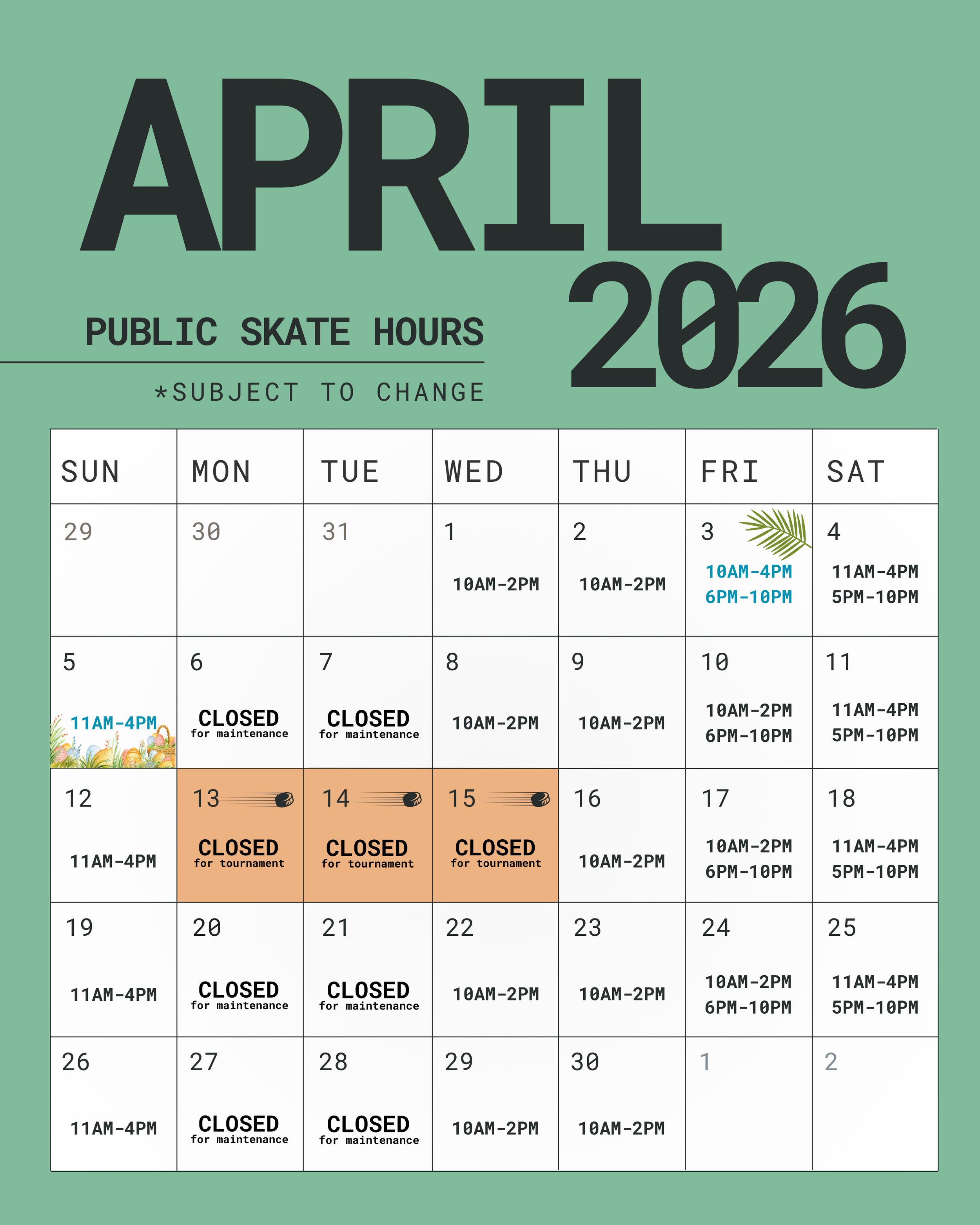 Group Rate (25+ skaters): $17 (Skate Rental Included)